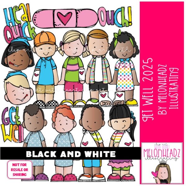 Get Well clip art Sick clip art Broken arm or leg clip art BLACK AND WHITE: This illustrated set contains all of the clip art images as shown in the preview picture. BLACK AND WHITE illustrations only.