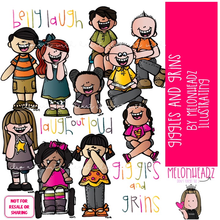 Giggles and grins clip art, laughing clip art, smiling clip art COLORED Version: This illustrated set contains all of the clip art images as shown in the preview picture. COLORED illustrations included.