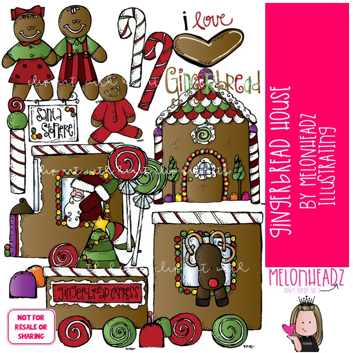 Gingerbread House clip art, Christmas clip art, Cookie clip art COLORED Version: This illustrated set contains all of the clip art images as shown in the preview picture. COLORED illustrations only.