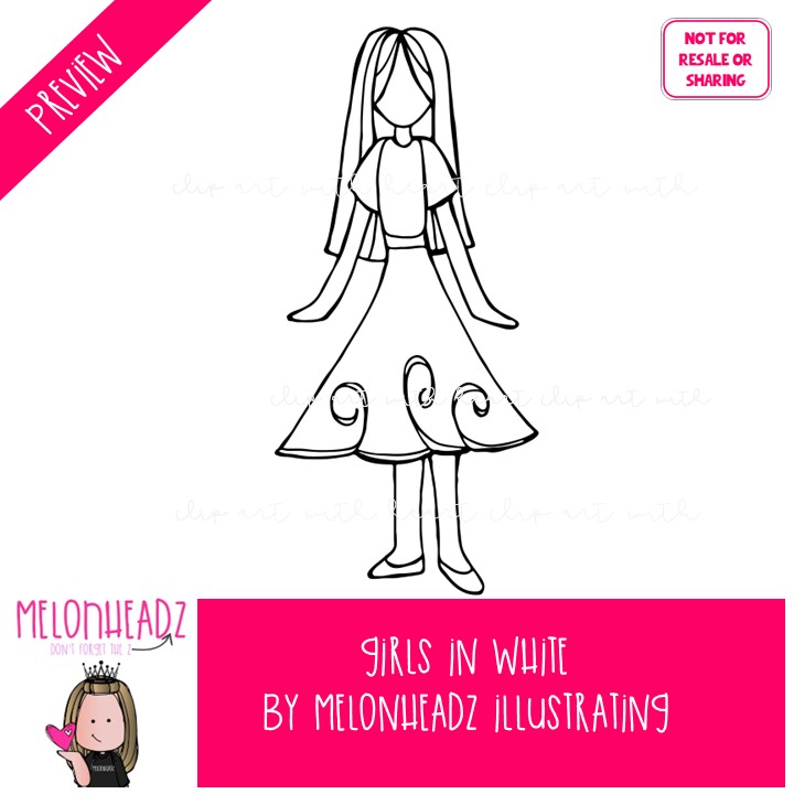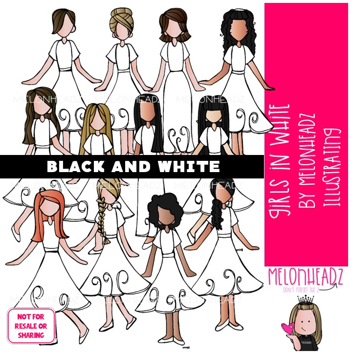 Girls in White clip art, Young Women, LDS BLACK AND WHITE: This illustrated set contains all of the clip art images as shown in the preview picture. BLACK AND WHITE illustrations included.