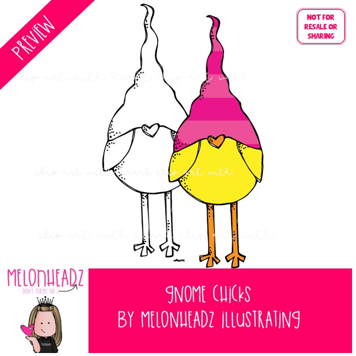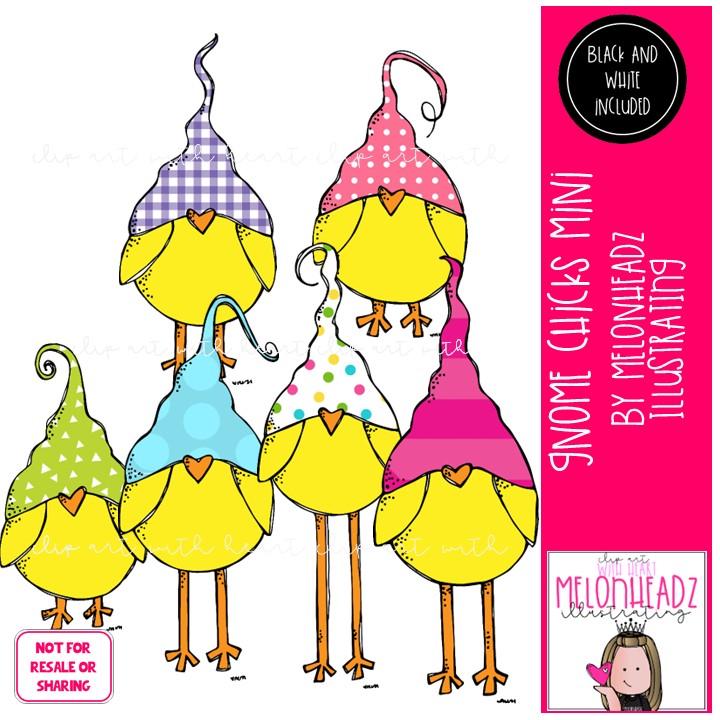 Gnome Chicks clip art Easter clip art Mini: This illustrated set contains all of the clip art images as shown in the preview picture. COLORED and BLACK AND WHITE  illustrations included.