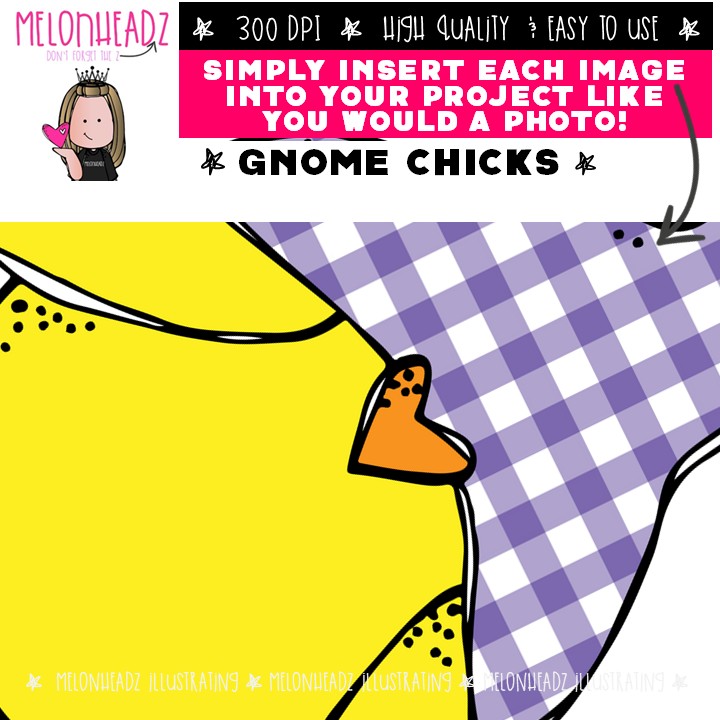 Gnome clip art, Chicks, Easter, Spring Mini: This illustrated set contains all of the clip art images as shown in the preview picture. COLORED and BLACK AND WHITE illustrations included.