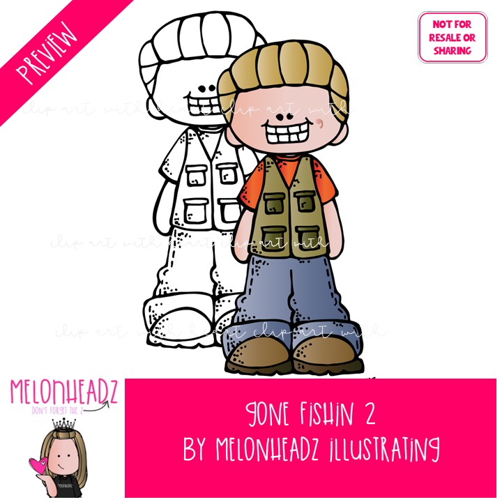 Gone Fishing clip art 2, hobby, sport COMBO PACK: This illustrated set contains all of the clip art images as shown in the preview picture. COLORED and BLACK AND WHITE illustrations included.