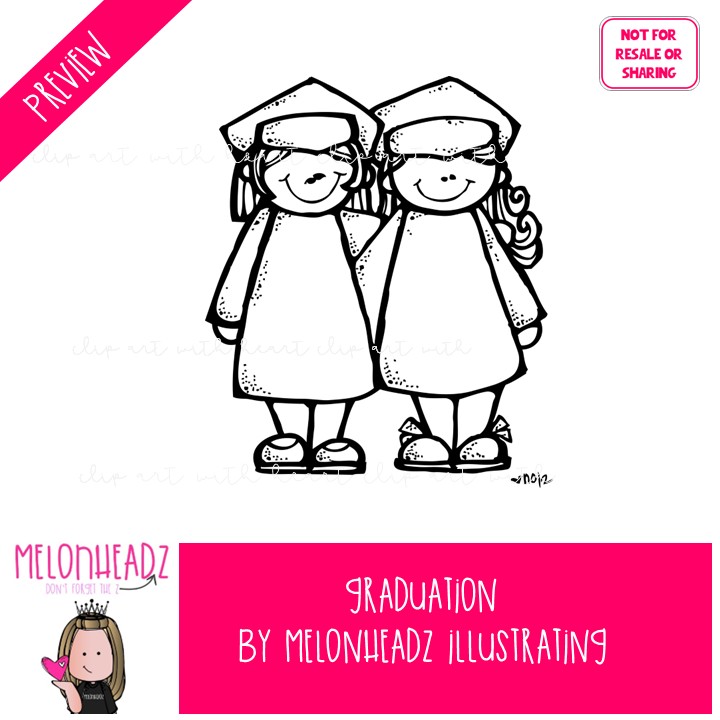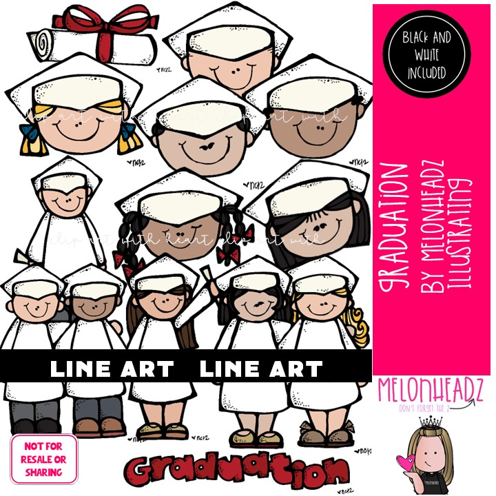 Graduation clip art Commencement clip art LINE ART and BLACK AND WHITE: This illustrated set contains all of the clip art images as shown in the preview picture. LINE ART  illustrations included.