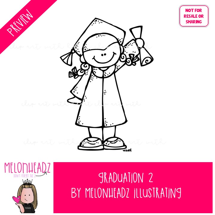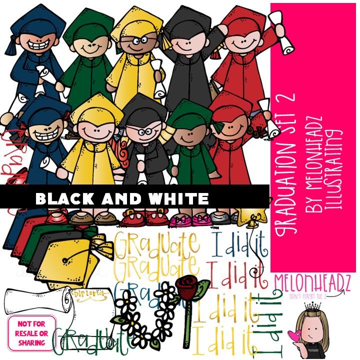 Graduation clip art Set 2 Commencement clip art BLACK AND WHITE: This illustrated set contains all of the clip art images as shown in the preview picture. BLACK AND WHITE  illustrations included.
