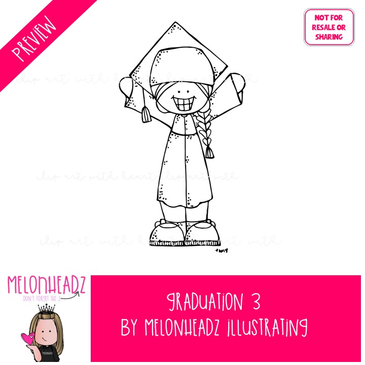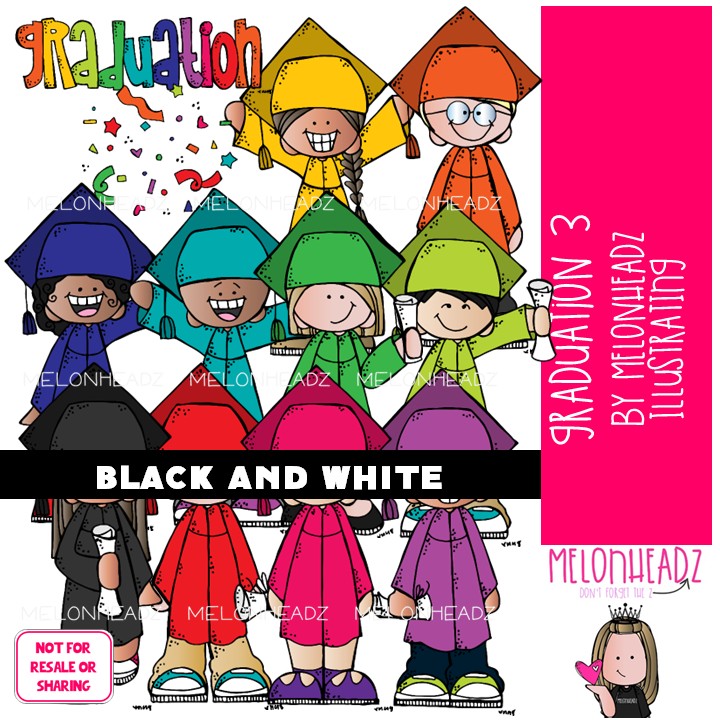 Graduation clip art Set 3 Commencement clip art BLACK AND WHITE: This illustrated set contains all of the clip art images as shown in the preview picture. BLACK AND WHITE illustrations included.