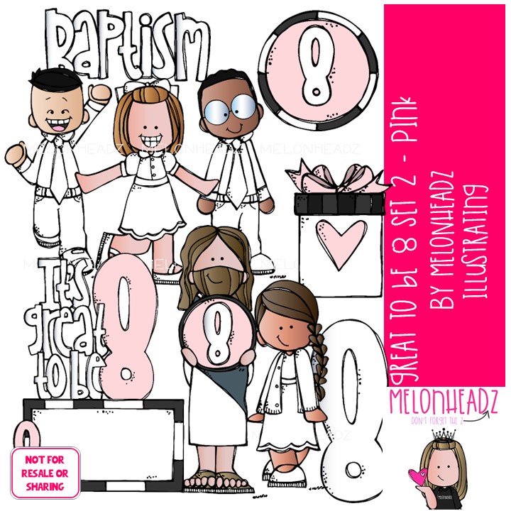 Great to be 8 clip art, LDS, baptism Pink Version: This illustrated set contains all of the clip art images as shown in the preview picture. COLORED illustrations included.