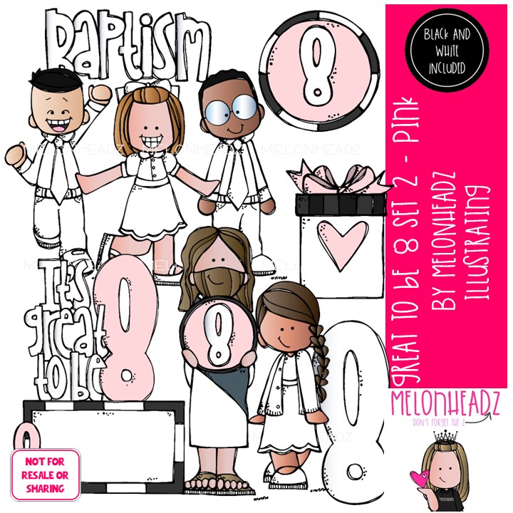 Great to be 8 clip art, LDS, baptism PINK Version COMBO PACK: This illustrated set contains all of the clip art images as shown in the preview picture. COLORED and BLACK AND WHITE illustrations included.