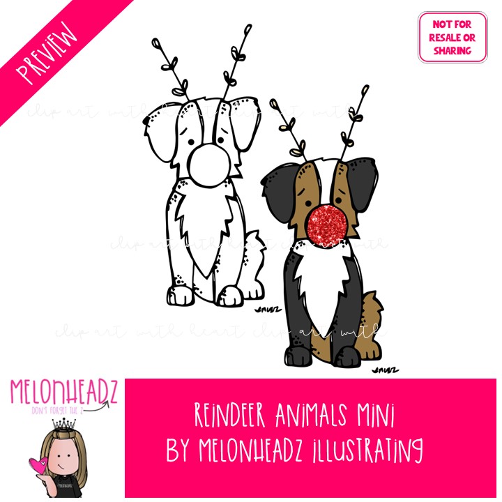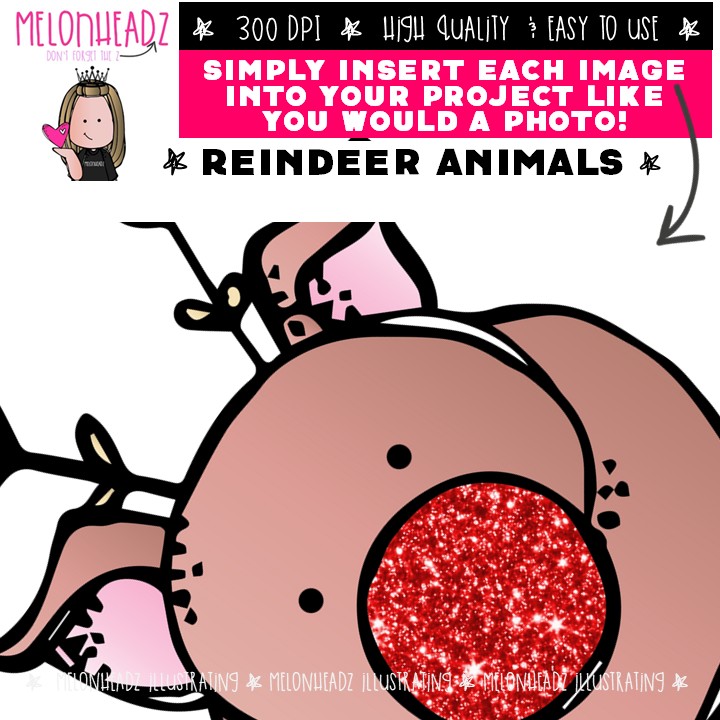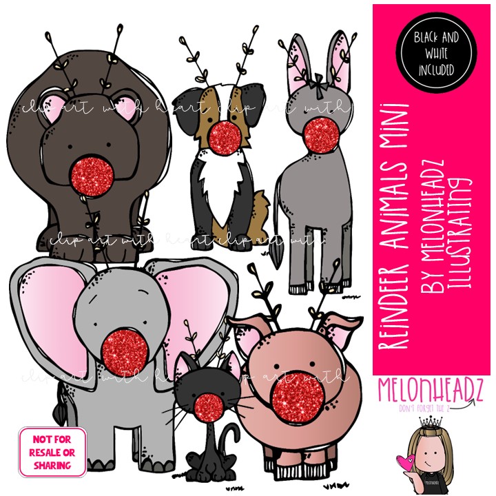 Reindeer animals clip art, Christmas clip art Mini: This illustrated set contains all of the clip art images as shown in the preview picture. COLORED and BLACK AND WHITE illustrations included.