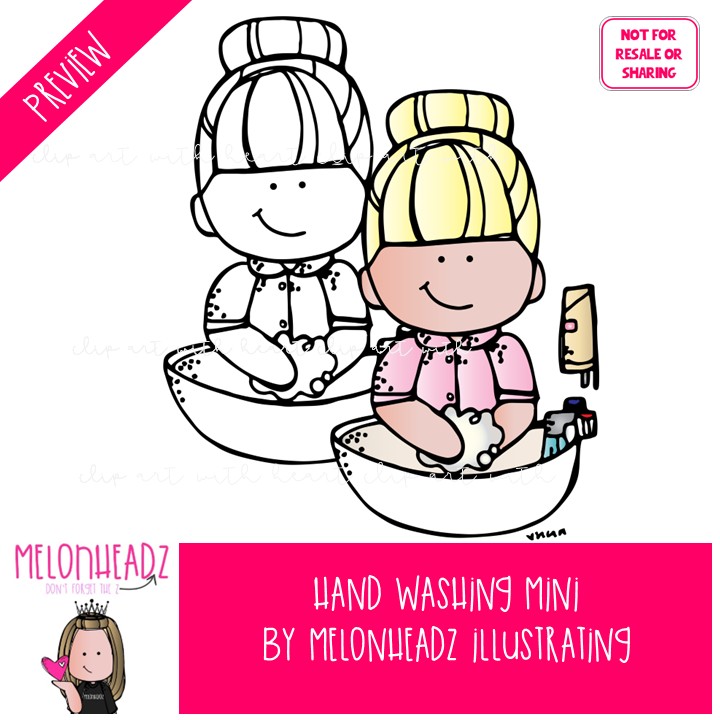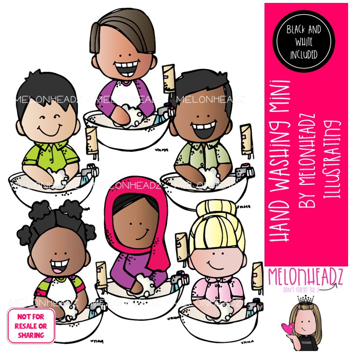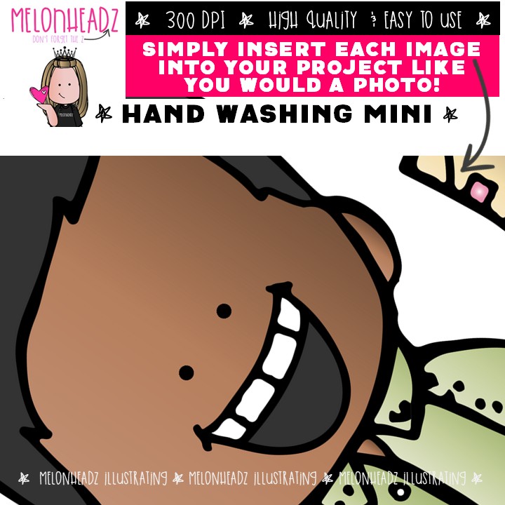 Handwashing clip art, hygiene Mini: This illustrated set contains all of the clip art images as shown in the preview picture. COLORED and BLACK AND WHITE illustrations included.