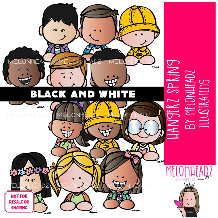 Hangerz clip art, Spring, topper BLACK AND WHITE: This illustrated set contains all of the clip art images as shown in the preview picture. BLACK AND WHITE illustrations included.