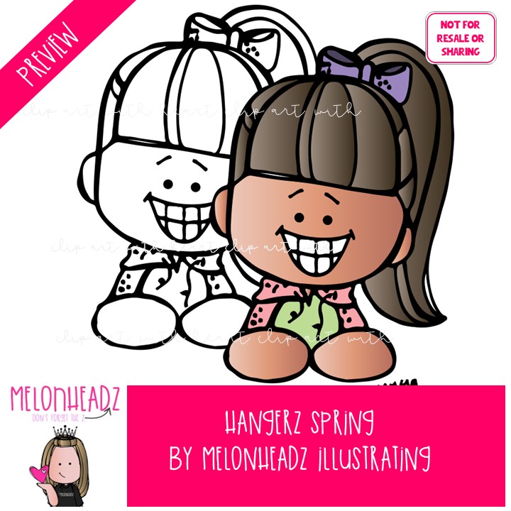 Hangerz clip art, Spring, topper COMBO PACK: This illustrated set contains all of the clip art images as shown in the preview picture. COLORED and BLACK AND WHITE illustrations included.