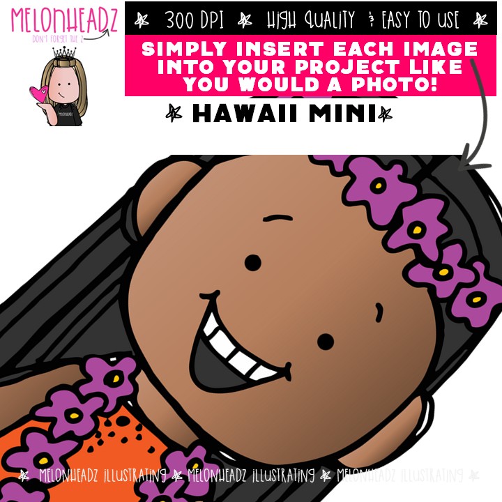 Hawaii clip art, Kid clip art, Around the World clip art MINI: This illustrated set contains all of the clip art images as shown in the preview picture. COLORED and BLACK AND WHITE illustrations included.