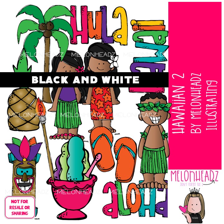 Hawaiian clip art 2, beach BLACK AND WHITE: This illustrated set contains all of the clip art images as shown in the preview picture. BLACK AND WHITE illustrations included.