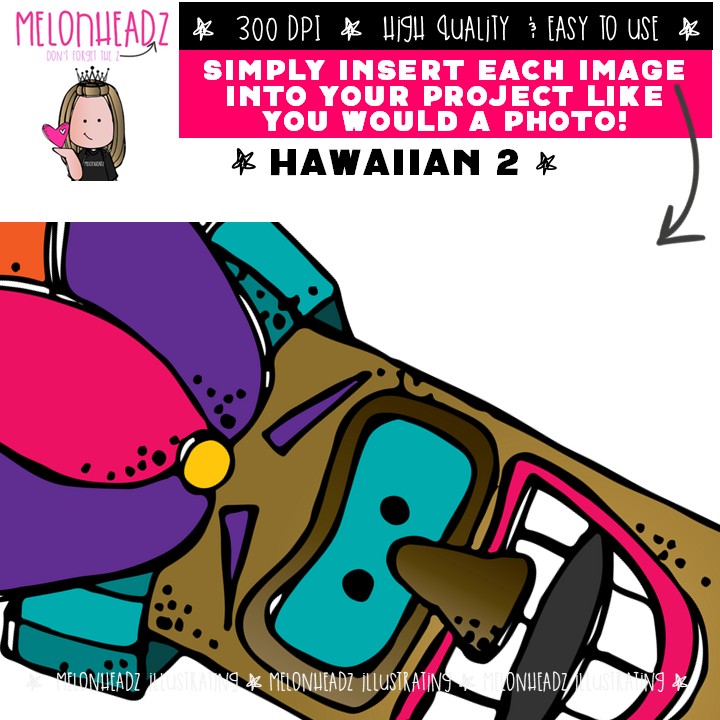 Hawaiian clip art 2, beach COLORED Version: This illustrated set contains all of the clip art images as shown in the preview picture. COLORED illustrations included.