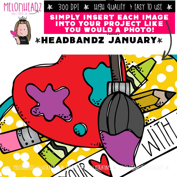 Headbandz clip art, January holidays, toppers COMBO PACK: This illustrated set contains all of the clip art images as shown in the preview picture. COLORED and BLACK AND WHITE illustrations included.