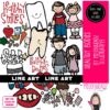 This illustrated set contains all of the clip art images as shown in the preview picture. LINE ART and BLACK AND WHITE illustrations included. ***LINE ART is the black outline with a transparent background. There will be no white fill in the image.