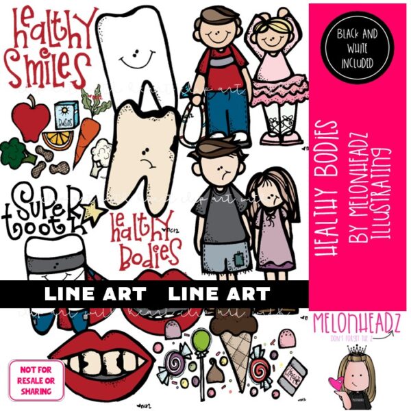 Healthy Bodies clip art Healthy Lifestyle clip art Healthy Food clip art LINE ART and B&W: This illustrated set contains all of the clip art images as shown in the preview picture. LINE ART and BLACK AND WHITE illustrations included.