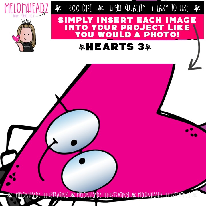 Each graphic is hand drawn by me (Nikki), and unique to Melonheadz.