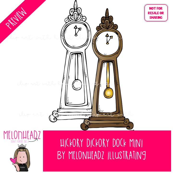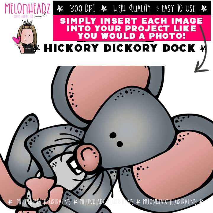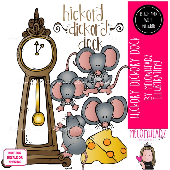 Hickory Dickory Dock clip art, literature, book companion Mini: This illustrated set contains all of the clip art images as shown in the preview picture. COLORED and BLACK AND WHITE illustrations included.