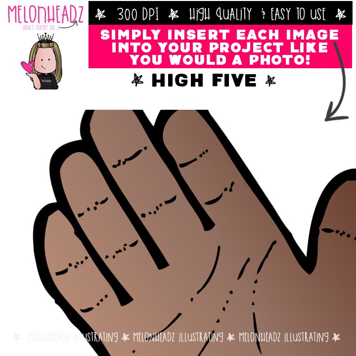 High five clip art, Hands clip art, Greetings clip art COMBO PACK: This illustrated set contains all of the clip art images as shown in the preview picture. COLORED, BLACK AND WHITE and LINE ART illustrations included.