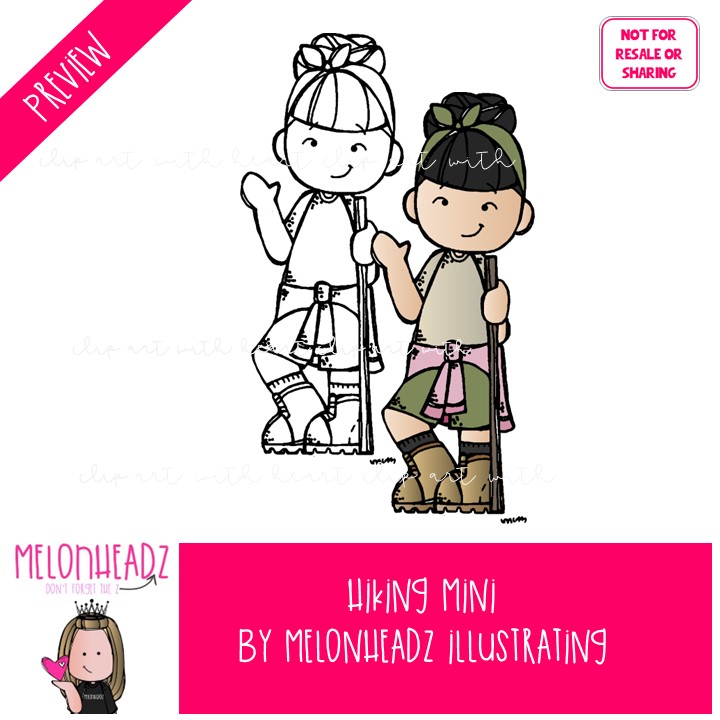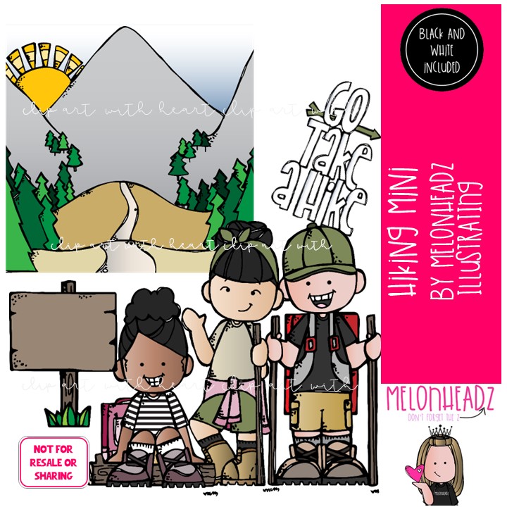 Hiking clip art, background, mountain MINI: This illustrated set contains all of the clip art images as shown in the preview picture. COLORED and BLACK AND WHITE illustrations included.