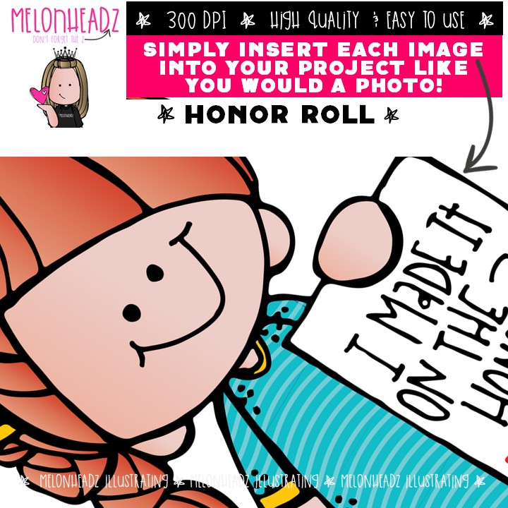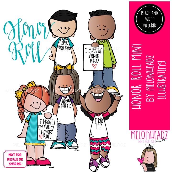 Honor Roll clip art, school, educational Mini: This illustrated set contains all of the clip art images as shown in the preview picture. COLORED and BLACK AND WHITE illustrations included.