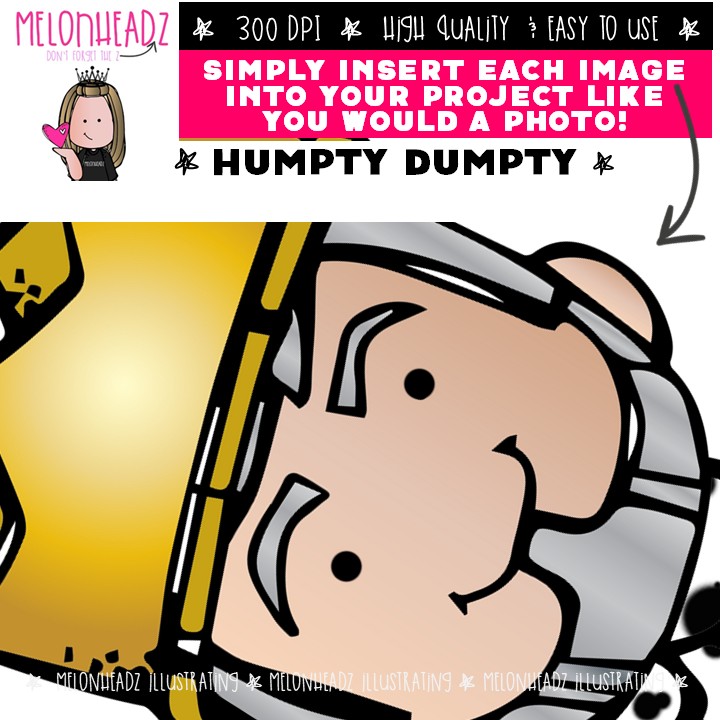 Humpty Dumpty clip art 2022, literature, book companion COMBO PACK