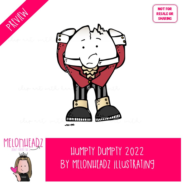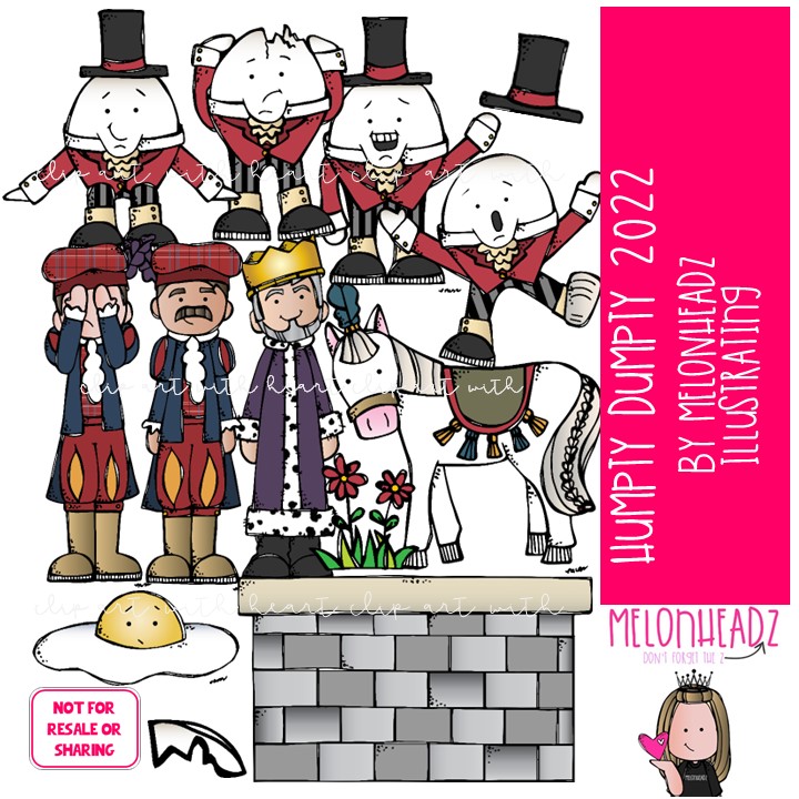 Humpty Dumpty clip art 2022, literature, book companion COLORED Version: This illustrated set contains all of the clip art images as shown in the preview picture. COLORED illustrations included.