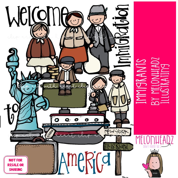 Immigrants clip art Travel clip art COLORED Version: This illustrated set contains all of the clip art images as shown in the preview picture. COLORED illustrations included.