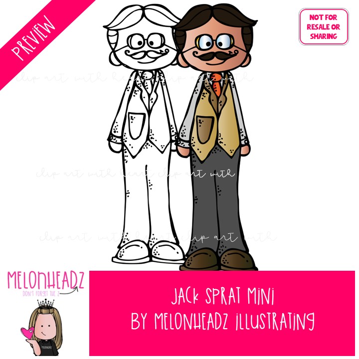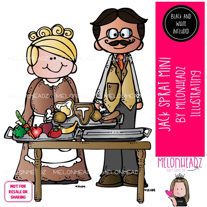 Jack Sprat clip art, nursery rhyme, book companion Combo Pack: This illustrated set contains all of the clip art images as shown in the preview picture. COLORED and BLACK AND WHITE illustrations included.