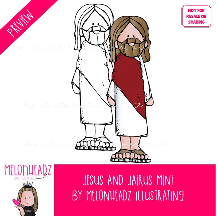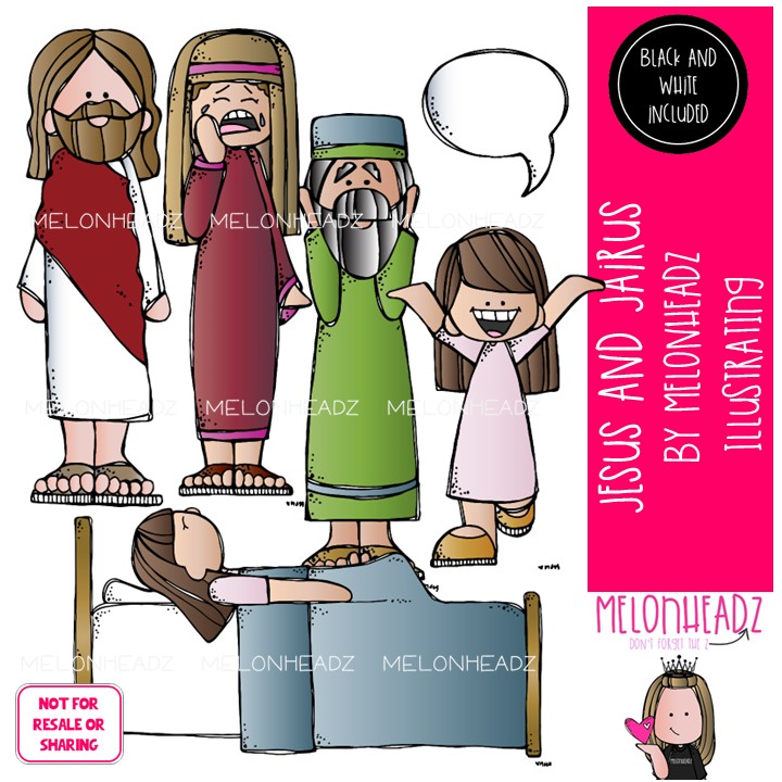 Jesus and Jairus clip art, Bible Mini: This illustrated set contains all of the clip art images as shown in the preview picture. COLORED and BLACK AND WHITE illustrations included.