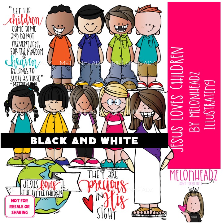 Jesus loves Children clip art, Bible, LDS BLACK AND WHITE: This illustrated set contains all of the clip art images as shown in the preview picture. BLACK AND WHITE illustrations included.