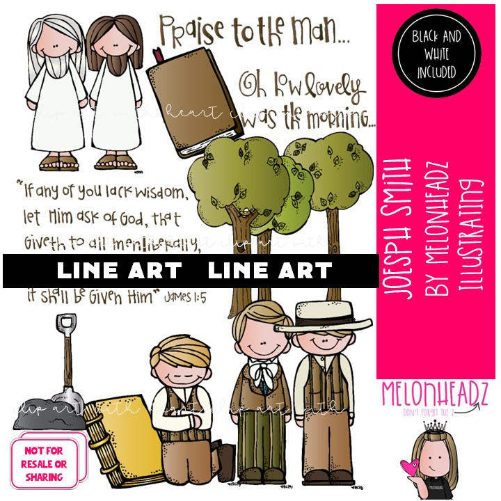 Joseph Smith clip art, LDS, Book of Mormon LINE ART and BLACK AND WHITE
