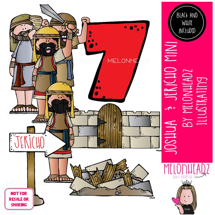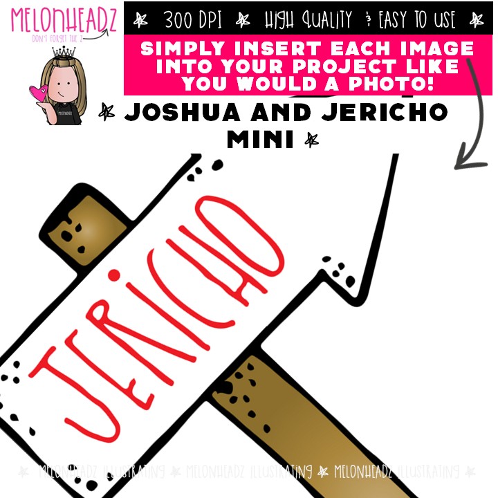 Joshua and Jericho clip art, Bible Mini: This illustrated set contains all of the clip art images as shown in the preview picture. COLORED and BLACK AND WHITE illustrations included.