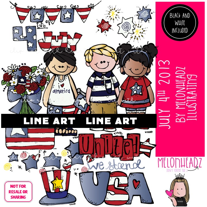July 4th clip art 2013 Independence Day clip art Patriotic clip art LINE ART and Black and White: This illustrated set contains all of the clip art images as shown in the preview picture. BLACK AND WHITE and LINE ART illustrations included.