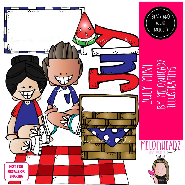 July clip art Picnic clip art 4th of July clip art Mini: This illustrated set contains all of the clip art images as shown in the preview picture. COLORED and BLACK AND WHITE illustrations included.