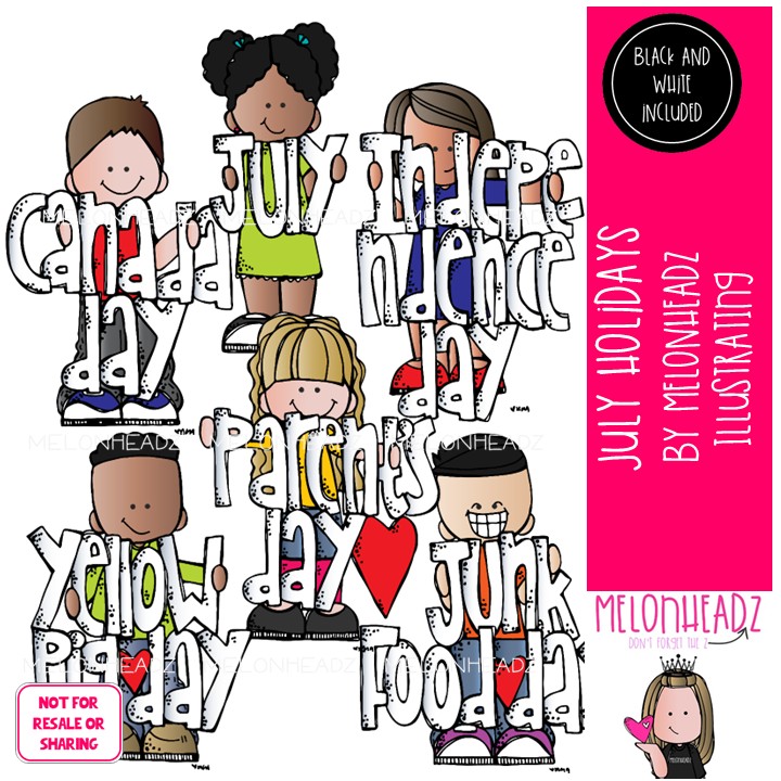 July Holidays clip art Independence Day clip art Canada Day clip art Mini: This illustrated set contains all of the clip art images as shown in the preview picture. COLORED and BLACK AND WHITE  illustrations included.