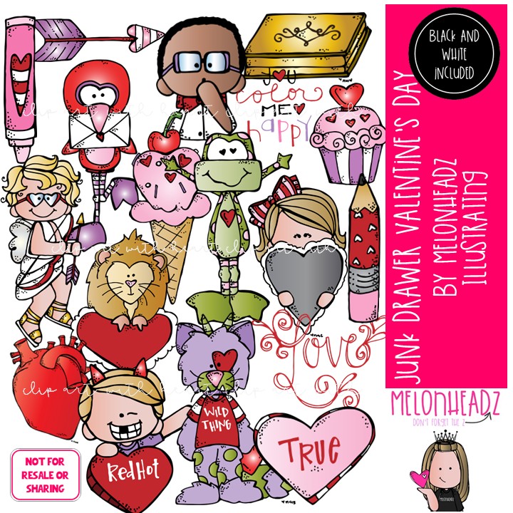 Valentine’s Day clip art, junk drawer clip art COMBO PACK: This illustrated set contains all of the clip art images as shown in the preview picture. COLORED and BLACK AND WHITE illustrations included.