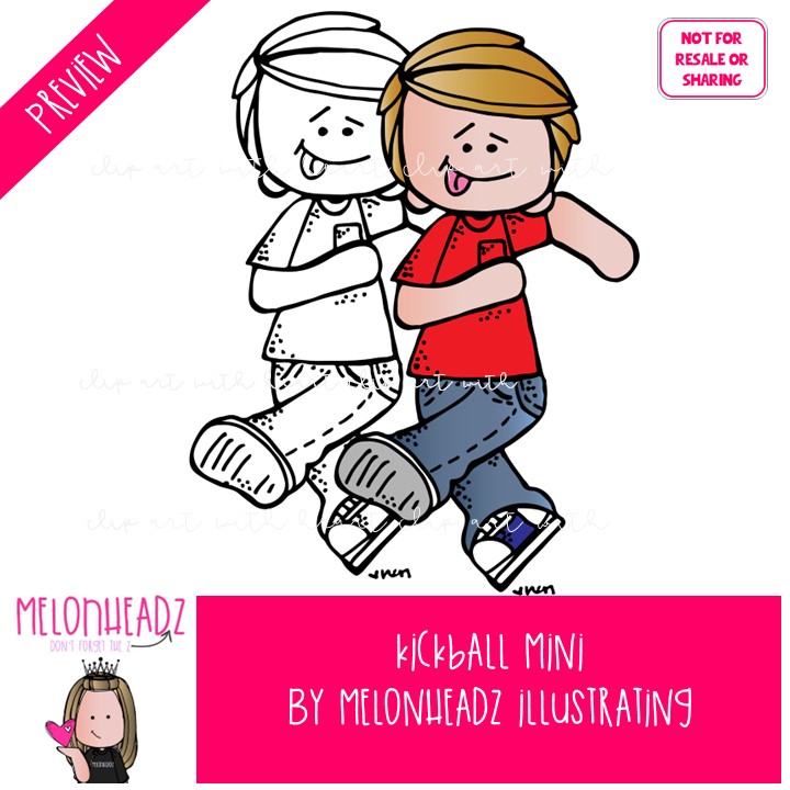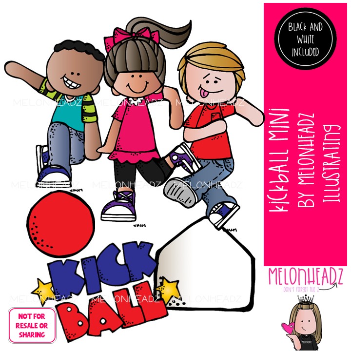 Kickball clip art, play Mini: This illustrated set contains all of the clip art images as shown in the preview picture. COLORED and BLACK AND WHITE illustrations included.