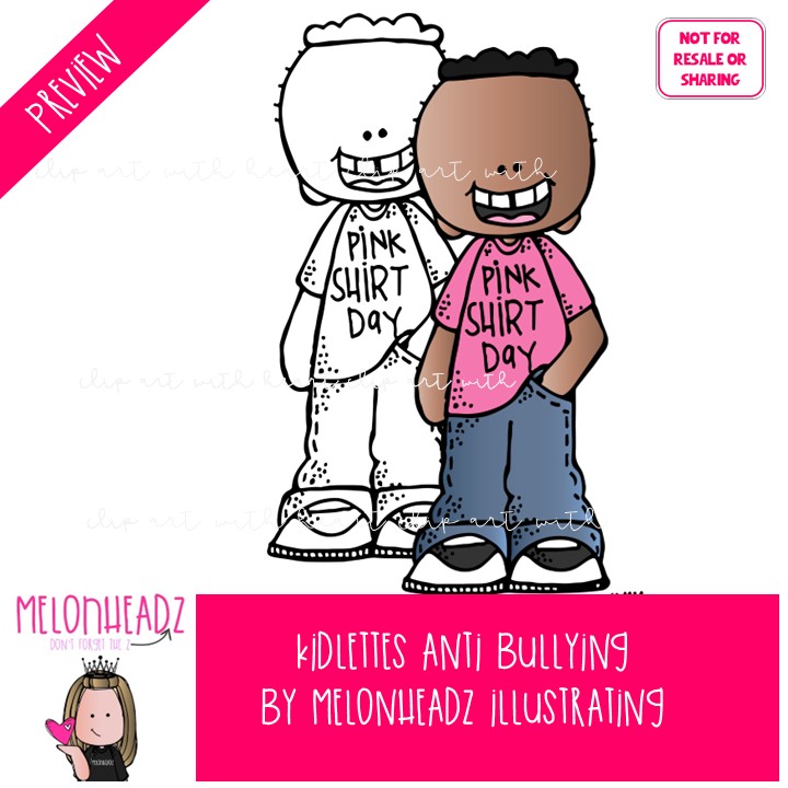 Kidlettes clip art, Anti Bullying clip art COMBO PACK: This illustrated set contains all of the clip art images as shown in the preview picture. COLORED and BLACK AND WHITE illustrations included.