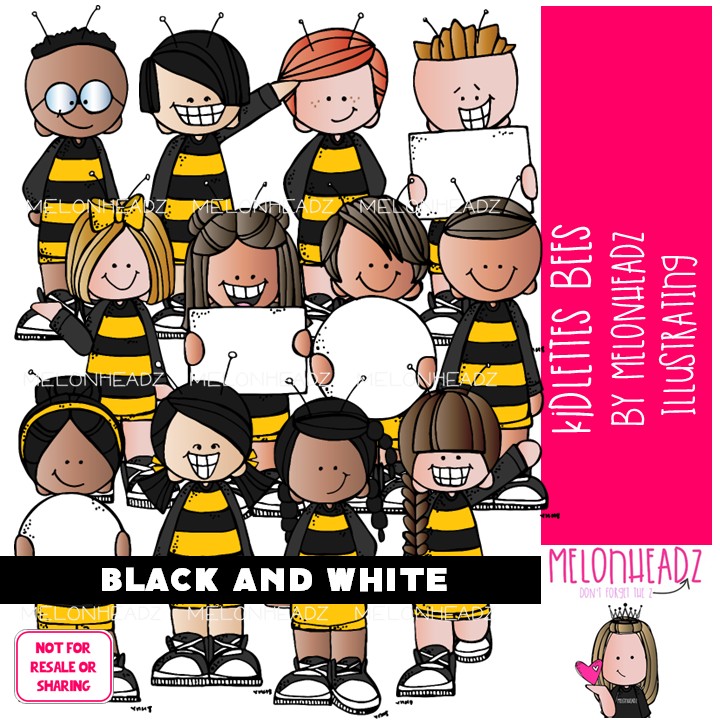 Kidlettes clip art, Bee clip art, Spelling Bee clip art, Costume BLACK AND WHITE: This illustrated set contains all of the clip art images as shown in the preview picture. BLACK AND WHITE illustrations included.