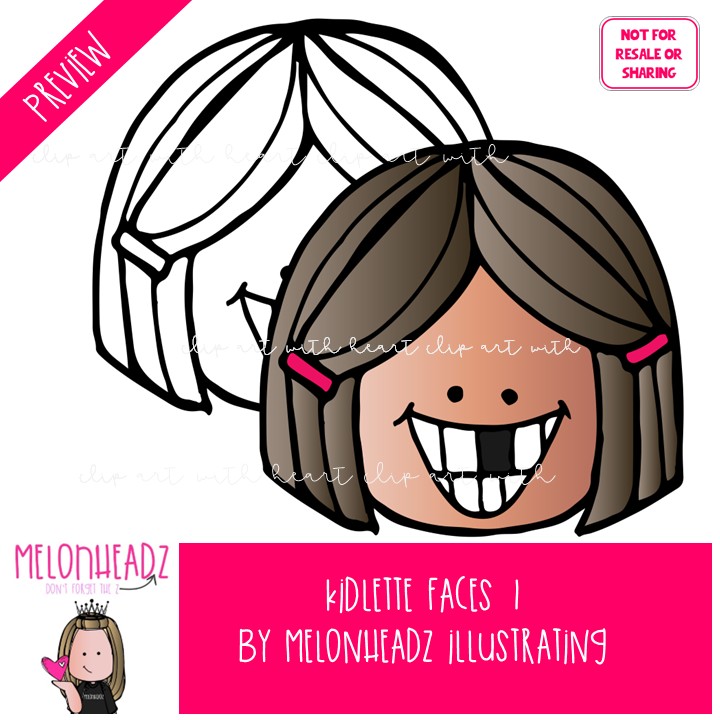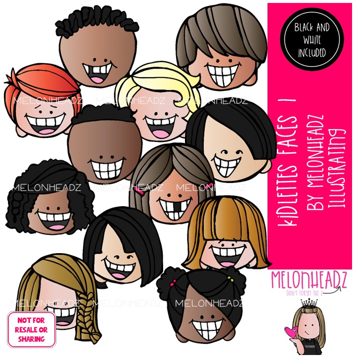 Kidlettes faces clip art 1, kid clip art COMBO PACK: This illustrated set contains all of the clip art images as shown in the preview picture. COLORED and BLACK AND WHITE illustrations included.