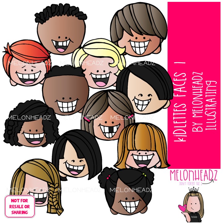 Kidlettes Faces clip art 1, Kids clip art COLORED Version: This illustrated set contains all of the clip art images as shown in the preview picture. COLORED illustrations included.