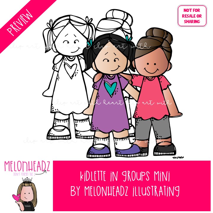 Kidlettes in Groups clip art, Groups of Kids clip art Mini: This illustrated set contains all of the clip art images as shown in the preview picture. COLORED and BLACK AND WHITE  illustrations included.