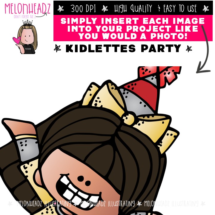 Kidlettes Party clip art, Celebration clip art COLORED Version: This illustrated set contains all of the clip art images as shown in the preview picture. COLORED illustrations included.