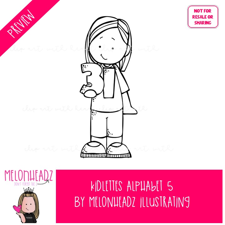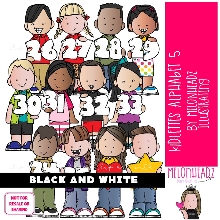 Kidlettes Alphabet clip art, Number clip art BLACK AND WHITE: This illustrated set contains all of the clip art images as shown in the preview picture. BLACK AND WHITE illustrations only.