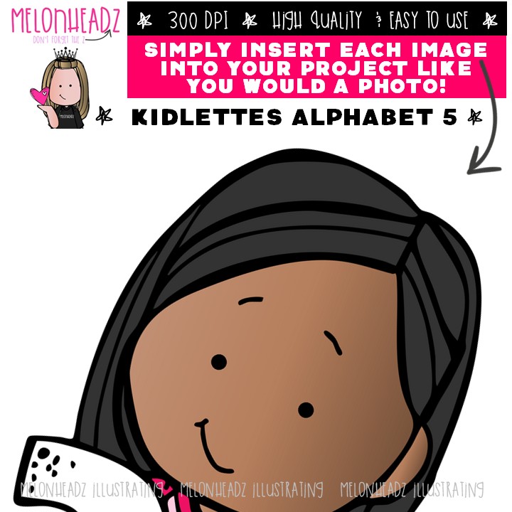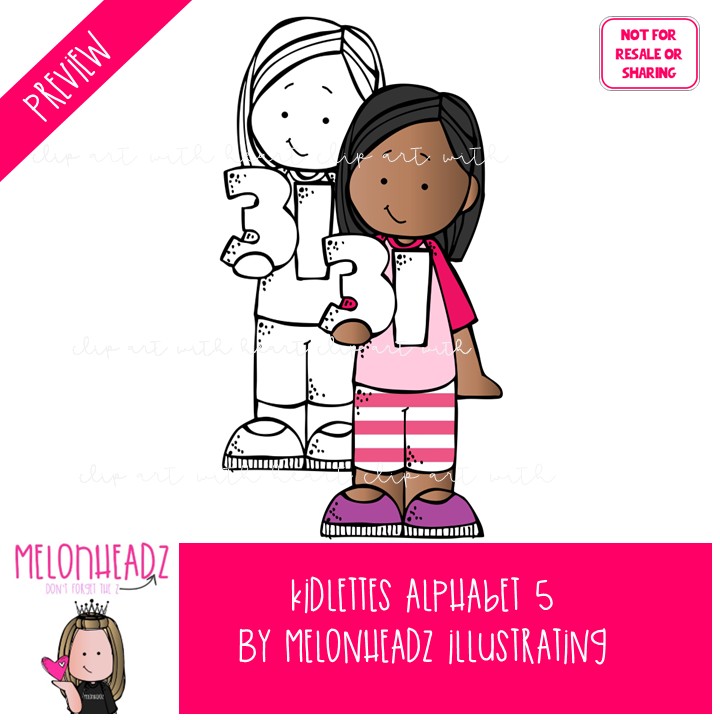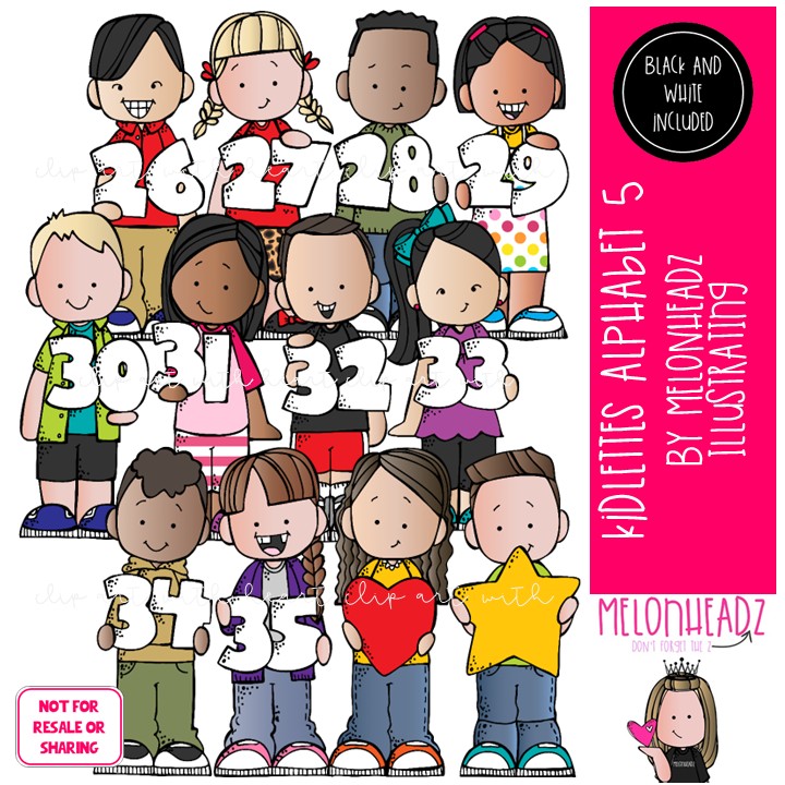 Kidlettes Alphabet clip art, Number clip art COMBO PACK: This illustrated set contains all of the clip art images as shown in the preview picture. COLORED and BLACK AND WHITE illustrations included.