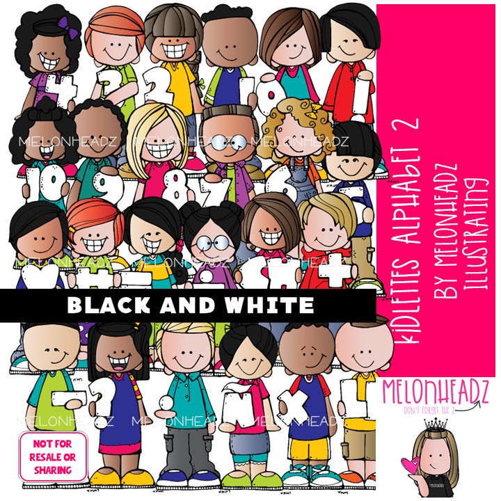 Kidlettes Alphabet 2 clip art, Letters clip art, Numbers clip art BLACK AND WHITE: This illustrated set contains all of the clip art images as shown in the preview picture. BLACK AND WHITE illustrations included.