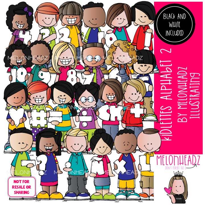 Kidlettes Alphabet 2 clip art, letters clip art, numbers clip art COMBO PACK: This illustrated set contains all of the clip art images as shown in the preview picture. COLORED and BLACK AND WHITE illustrations included.